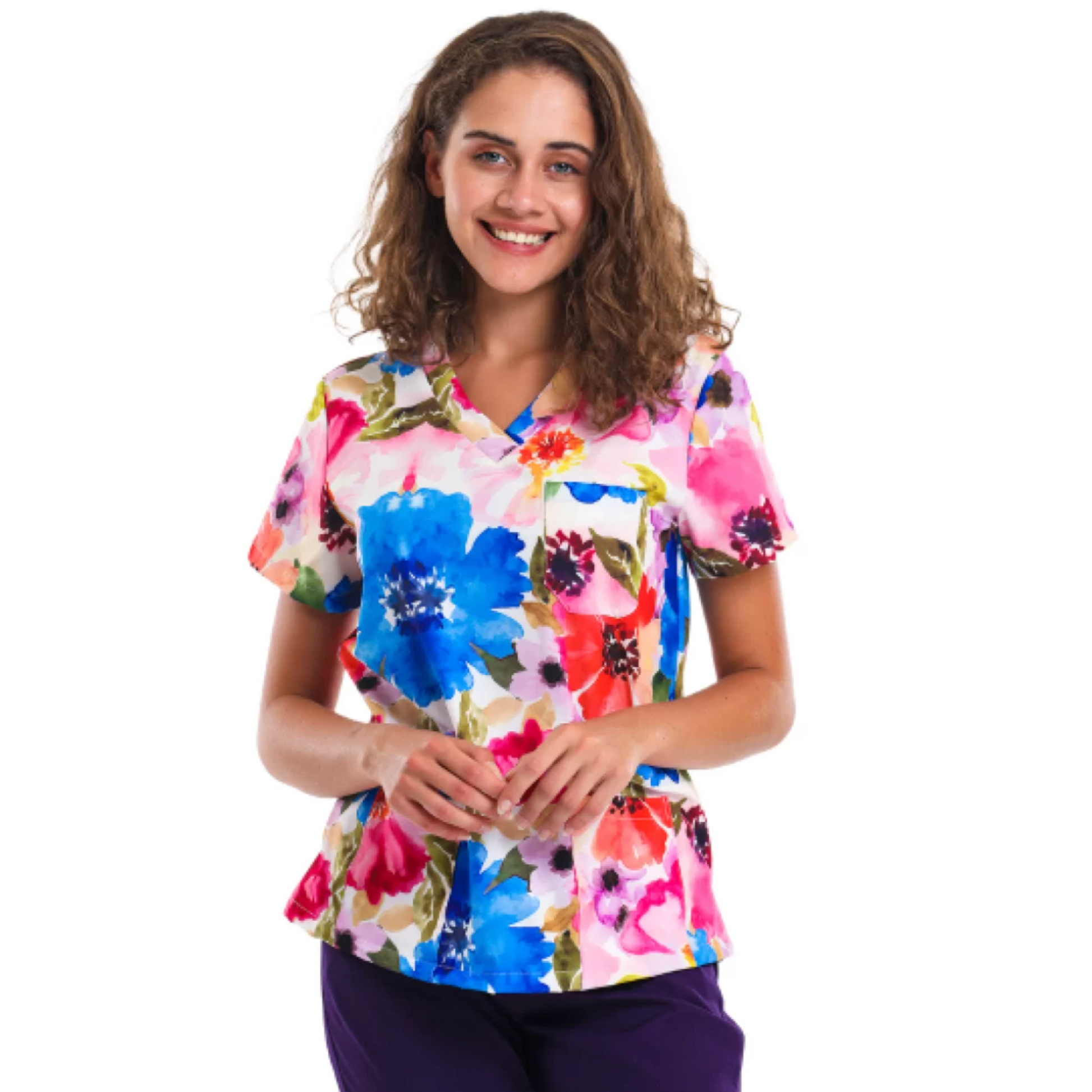 Élevez votre garde-robe professionnelle avec notre superbe haut floral, méticuleusement conçu pour les professionnels de la santé qui recherchent à la fois style et fonctionnalité. Fabriqué à partir d'un tissu respirant de haute qualité, ce haut assure un confort toute la journée, vous gardant au frais et composé pendant les quarts de travail exigeants.