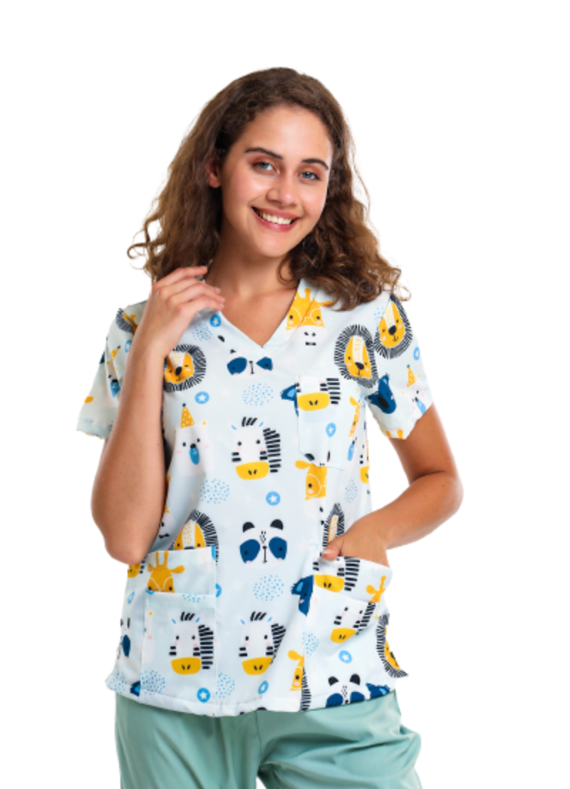 Élevez votre garde-robe professionnelle avec notre superbe haut floral, méticuleusement conçu pour les professionnels de la santé qui recherchent à la fois style et fonctionnalité. Fabriqué à partir d'un tissu respirant de haute qualité, ce haut assure un confort toute la journée, vous gardant au frais et composé pendant les quarts de travail exigeants.